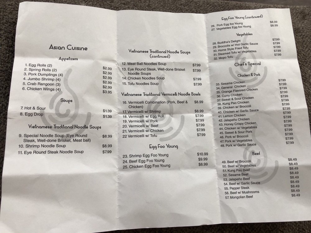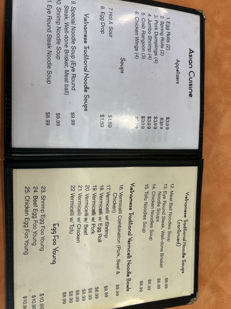 Welcome to La Fogata’s China Kitchen, a unique dining experience in Manor, TX, where flavors from China, Vietnam, and Mexico converge. This unclaimed gem specializes in a fusion of traditional dishes that are both comforting and dynamic. The menu boasts robust offerings, from classic soups like Hot and Sour and Egg Drop, to Vietnamese specialties such as Special Noodle Soup and the tantalizing Pork Vermicelli.